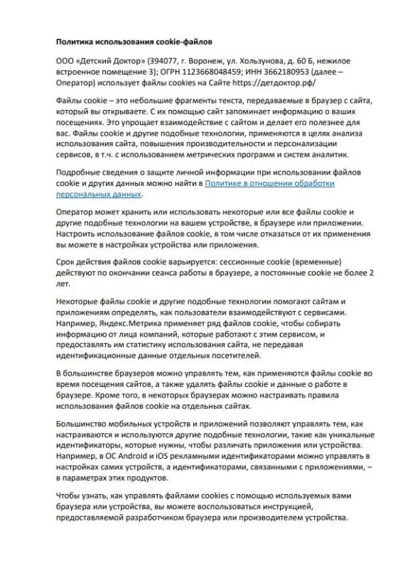 ООО «Детский Доктор Плюс» использует на сайте